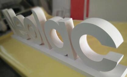 2)pvc板雕刻造型后噴汽車漆或自噴漆。這主要適用一些有色板沒有的單色字。