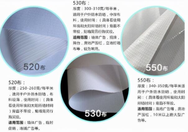 如果你接觸過(guò)3種噴繪布就知道,無(wú)論是密度還是厚度,550噴繪布都要>530噴繪布>520噴繪布。